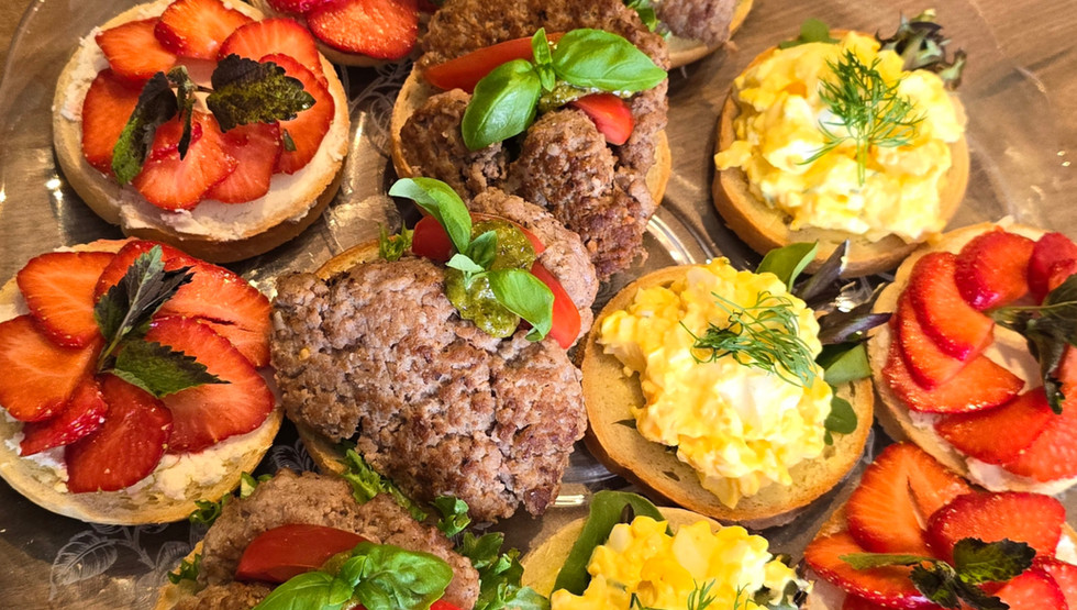 Indulge in a Norwegian inspired buffet with tasty, colourful open sandwiches, rolls, variety of salads, finger food, cakes, dog cakes and more.